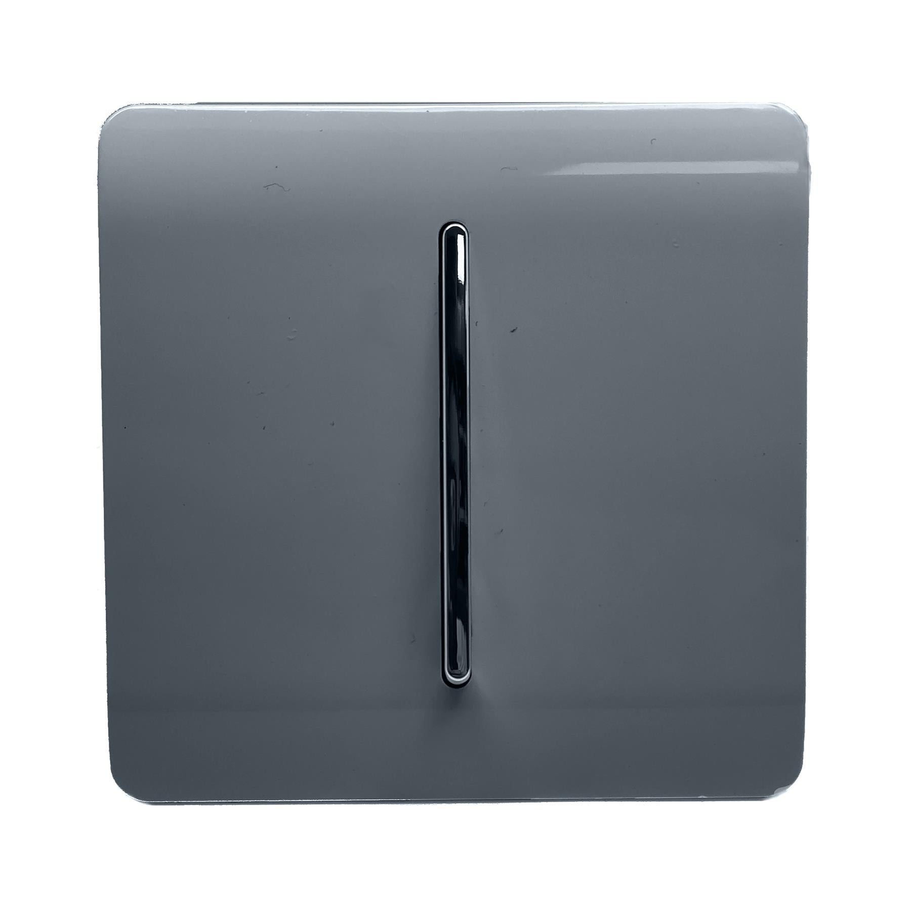 Trendi 1 Gang 2 Way 240V Screwless Raised Front Plate Plastic Artistic Modern Glossy 10 Amp Chrome Rocker Single Electrical Wall Light Switch Warm Grey - ART-SS2WG