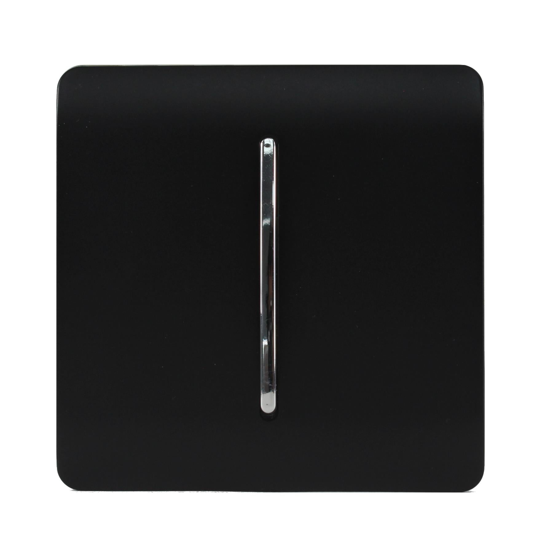 Trendi 1 Gang 2 Way 240V Screwless Raised Front Plate Plastic Artistic Modern Glossy 10 Amp Chrome Rocker Single Electrical Wall Light Switch Matt Black - ART-SS2MBK