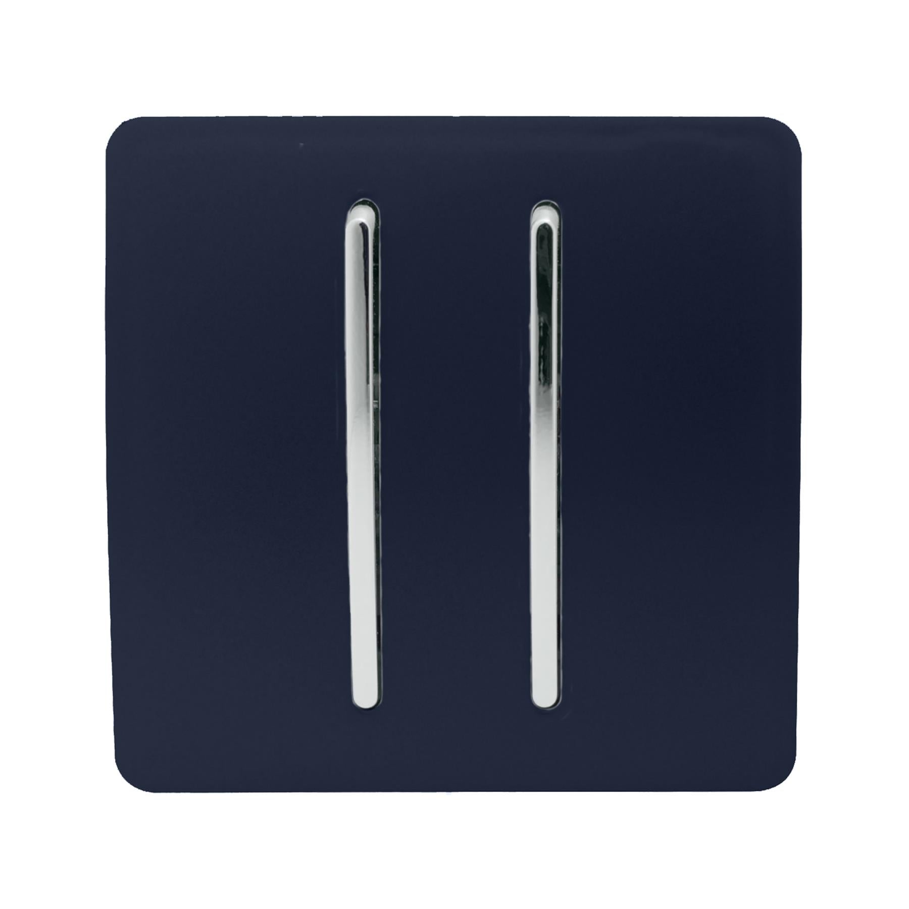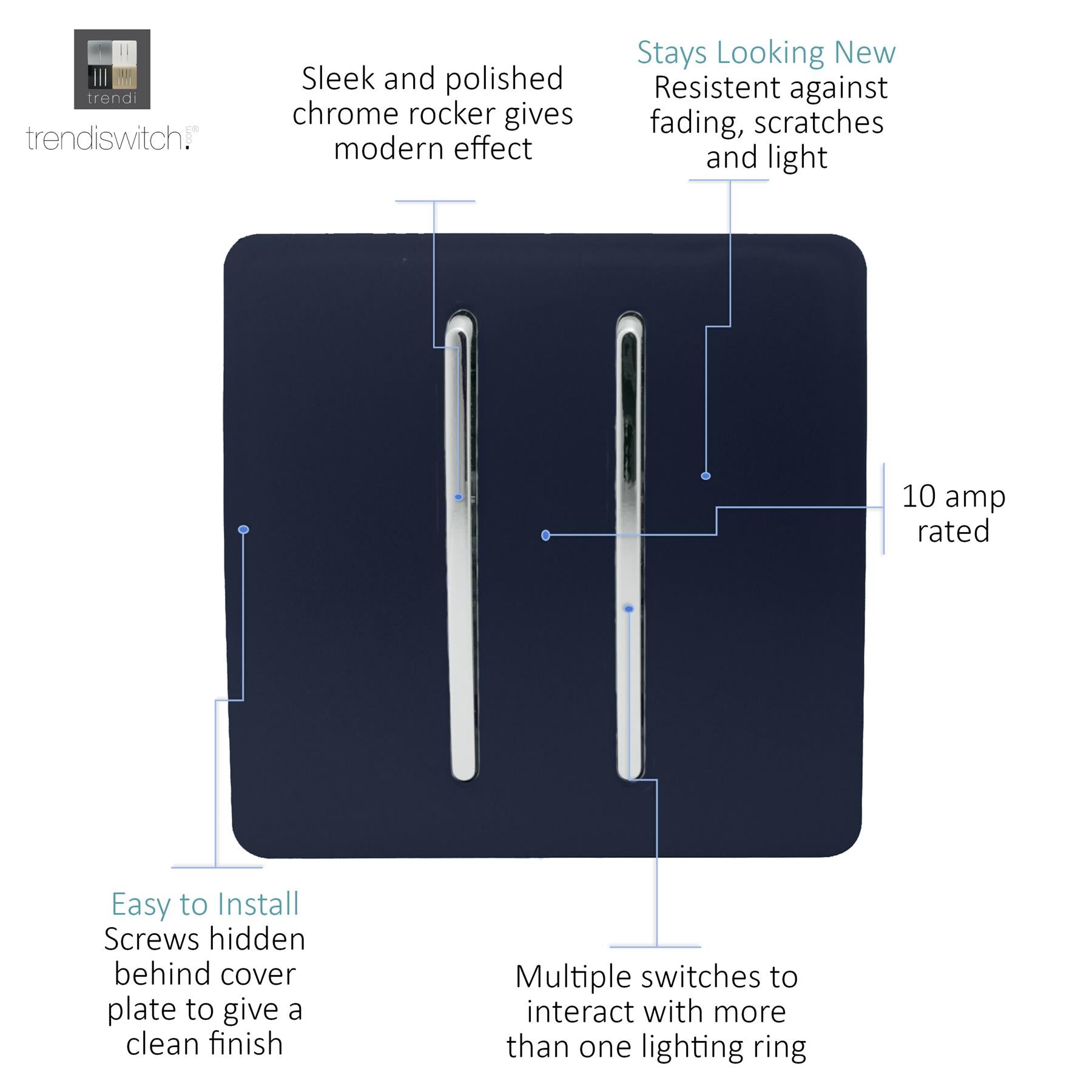 Trendi 2 Gang 3 way (Intermediate) 240V Screwless Raised Front Plate Plastic Artistic Modern Glossy 10 Amp Chrome Rocker Double Electrical Wall Light Switch in Navy Blue