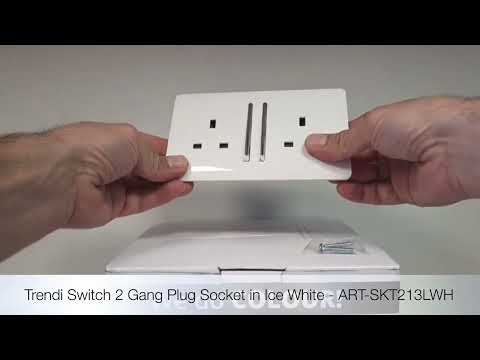 Trendi 2 Gang Raised Artistic Modern Glossy Screwless 13 Amp Single Pole with Chrome Switched UK Standard Electrical Double Wall Plug Socket in Ice White - ART-SKT213LWH