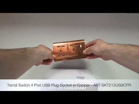 Trendi 2 Gang Artistic Modern Glossy Screwless Raised 13 Amp 240v Short 4 USB Type A Charging Points Double Chrome Switched Electrical Wall Plug Socket in Copper