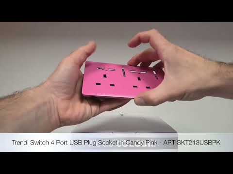 Trendi 2 Gang Artistic Modern Glossy Screwless Raised 13 Amp 240v Short 4 USB Type A Charging Points Double Chrome Switched Electrical Wall Plug Socket in Candy Pink