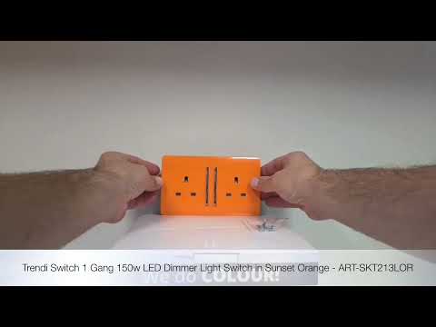 Trendi 2 Gang Raised Artistic Modern Glossy Screwless 13 Amp Single Pole with Chrome Switched UK Standard Electrical Double Wall Plug Socket in Sunset Orange - ART-SKT213LOR