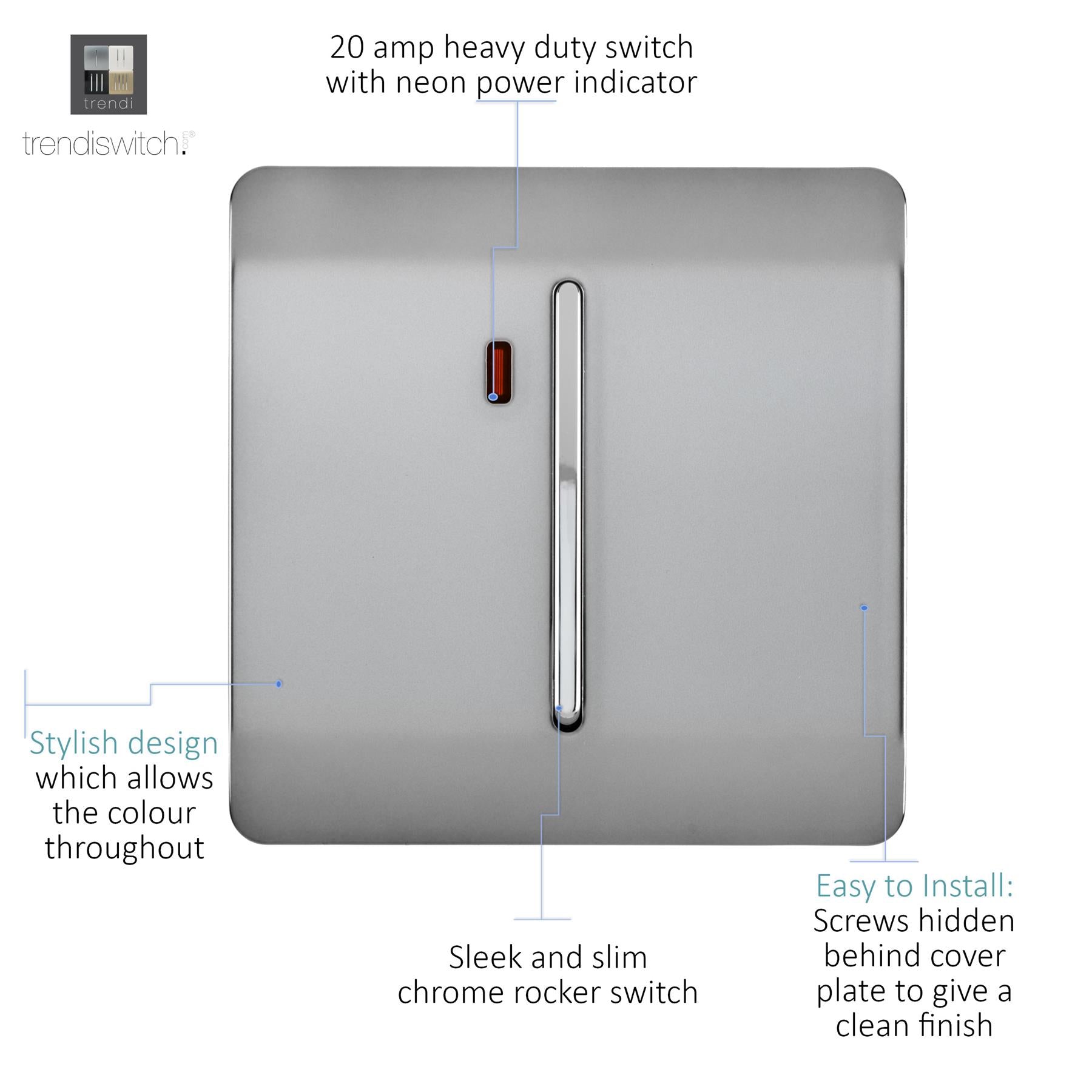 Trendi Artistic Modern Glossy 20 A Tactile Light Switch & Neon Insert Stainless Steel
