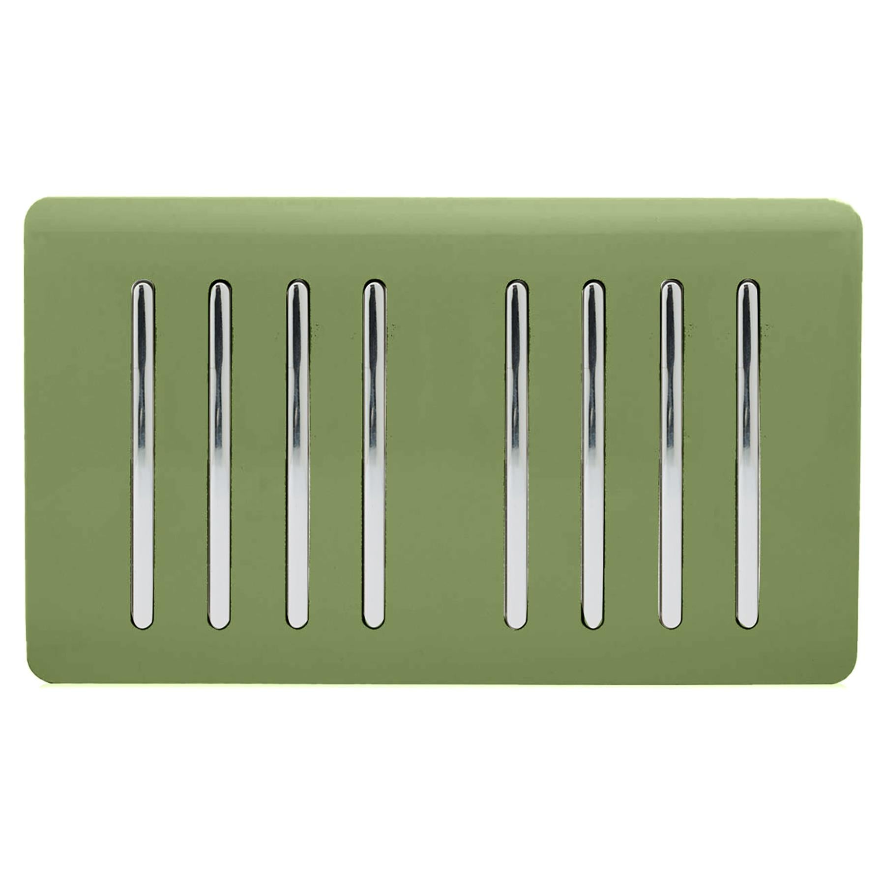 Trendi 8 Gang 2 way 240V Screwless Raised Front Twin Plate Plastic Artistic Modern Glossy 10 Amp Chrome Rocker Quad Electrical Wall Light Switch in Moss Green- ART-SS88MG