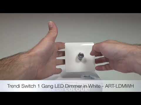 Trendi 1 Gang 2 Way 240V 150w LED Dimmer Screwless Raised Front Plate Plastic Artistic Modern Glossy 10 Amp Chrome Single Electrical Wall Light Switch in Ice White - ART-LDMWH