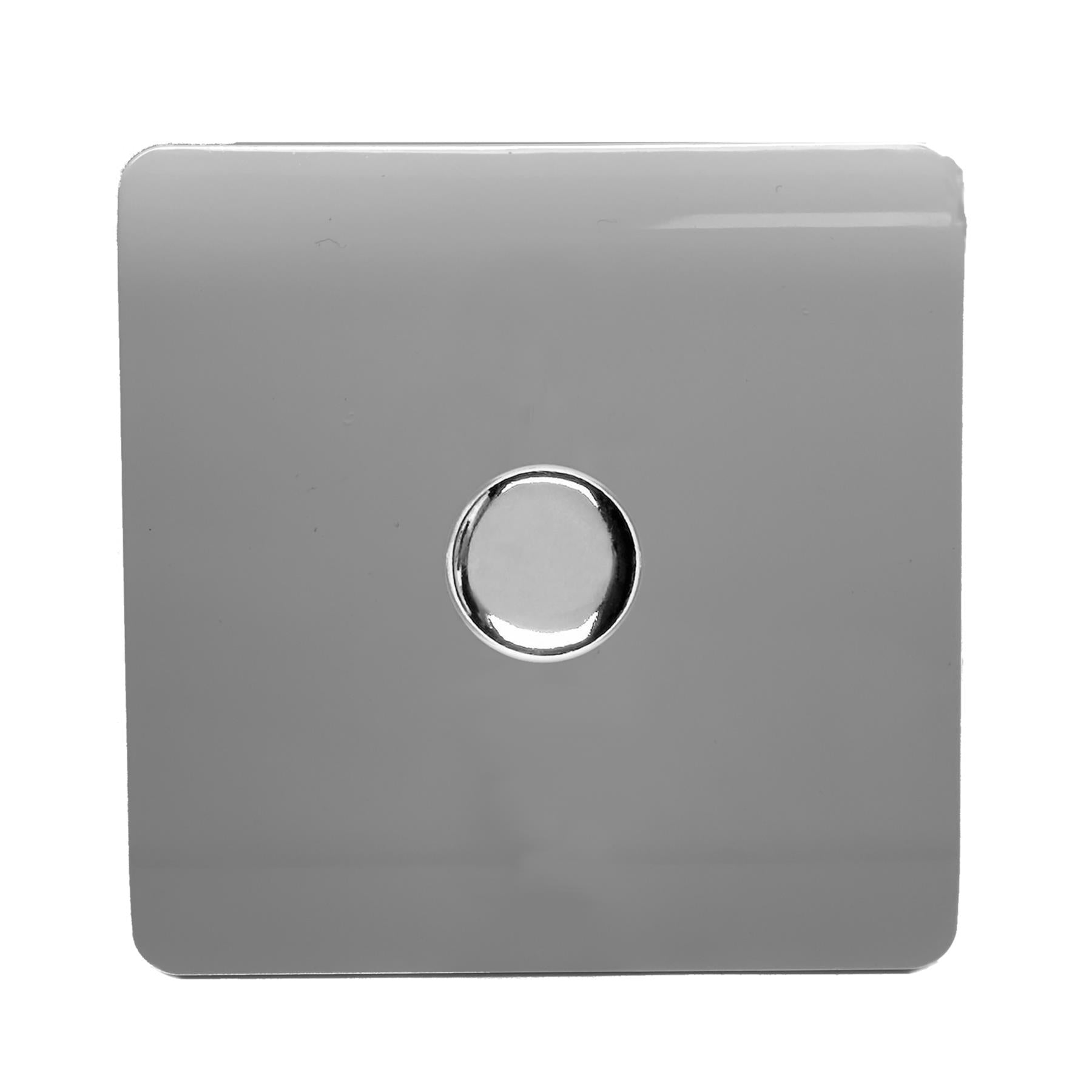 Trendi 1 Gang 2 Way 240V 150w LED Dimmer Screwless Raised Front Plate Plastic Artistic Modern Glossy 10 Amp Chrome Single Electrical Wall Light Switch in Light Grey - ART-LDMLG