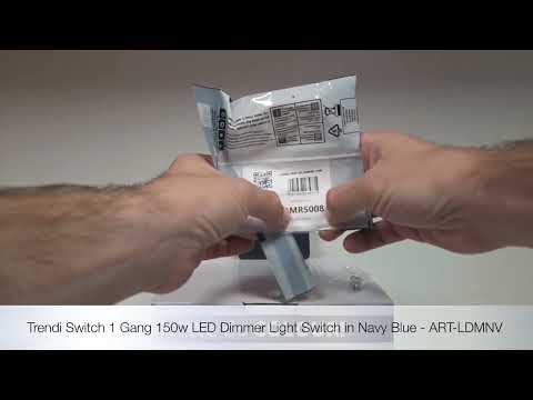 Trendi 1 Gang 2 Way 240V 150w LED Dimmer Screwless Raised Front Plate Plastic Artistic Modern Glossy 10 Amp Chrome Single Electrical Wall Light Switch in Navy Blue - ART-LDMNV