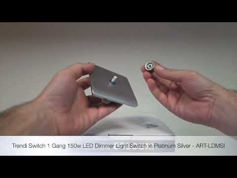 Trendi 1 Gang 2 Way 240V 150w LED Dimmer Screwless Raised Front Plate Plastic Artistic Modern Glossy 10 Amp Chrome Single Electrical Wall Light Switch in Platinum Silver - ART-LDMSI