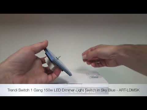Trendi 1 Gang 2 Way 240V 150w LED Dimmer Screwless Raised Front Plate Plastic Artistic Modern Glossy 10 Amp Chrome Single Electrical Wall Light Switch in Sky Blue - ART-LDMSK