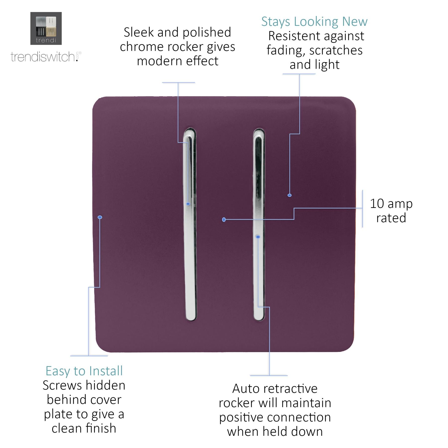 Trendi Artistic Modern Glossy Tactile Auto Retractive 2 Door Bell Switch Plum