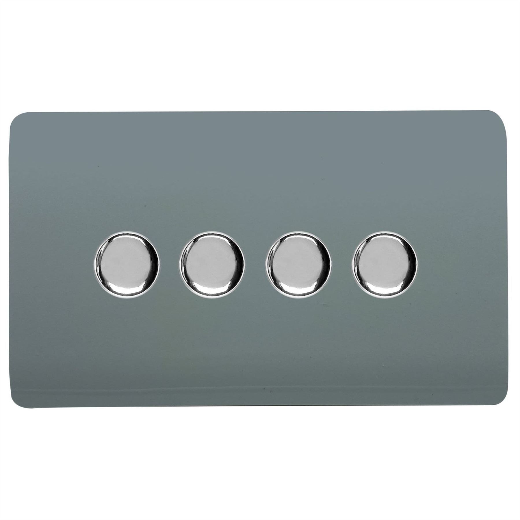 Trendi 4 Gang 2 Way 240V 100w LED Dimmer Screwless Raised Front Plate Plastic Artistic Modern Glossy 10 Amp Chrome Single Electrical Wall Light Switch in Cool Grey - ART-4LDMCG