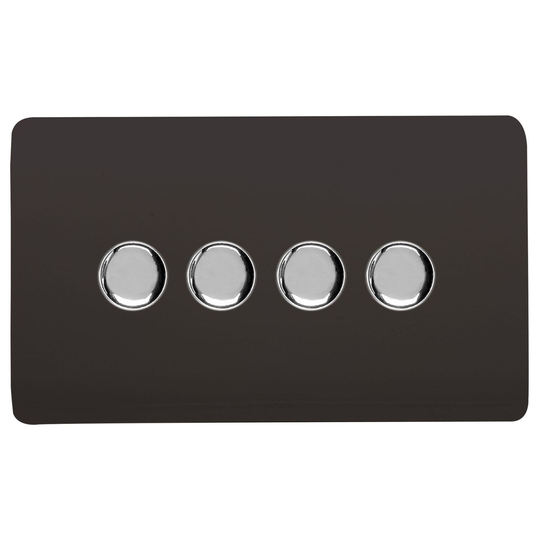 Trendi 4 Gang 2 Way 240V 100w LED Dimmer Screwless Raised Front Plate Plastic Artistic Modern Glossy 10 Amp Chrome Single Electrical Wall Light Switch in Dark Mocha Brown - ART-4LDMDB