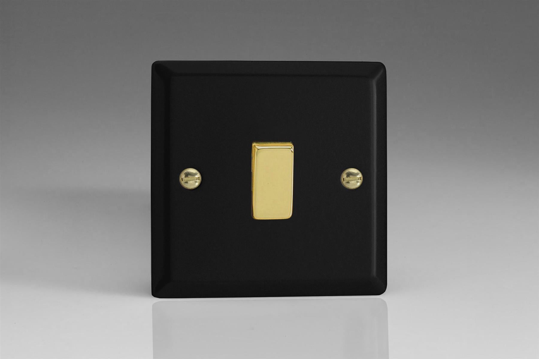 Varilight 1-Gang 10A 1- or 2-Way Rocker Switch in Vogue Matt Black w/ Polished Brass