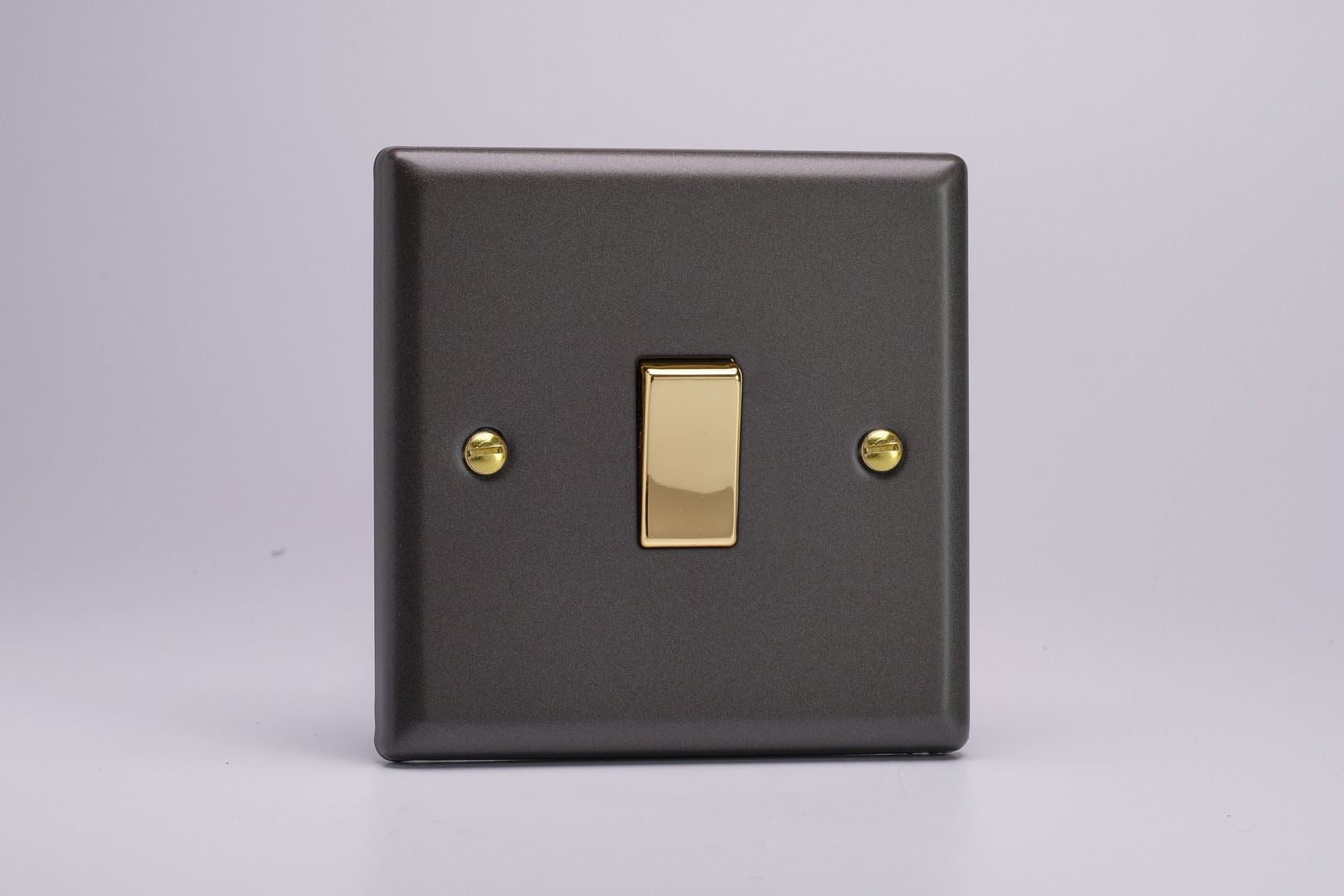 Varilight 1-Gang 10A 1- or 2-Way Rocker Switch in Vogue Slate w/ Brass