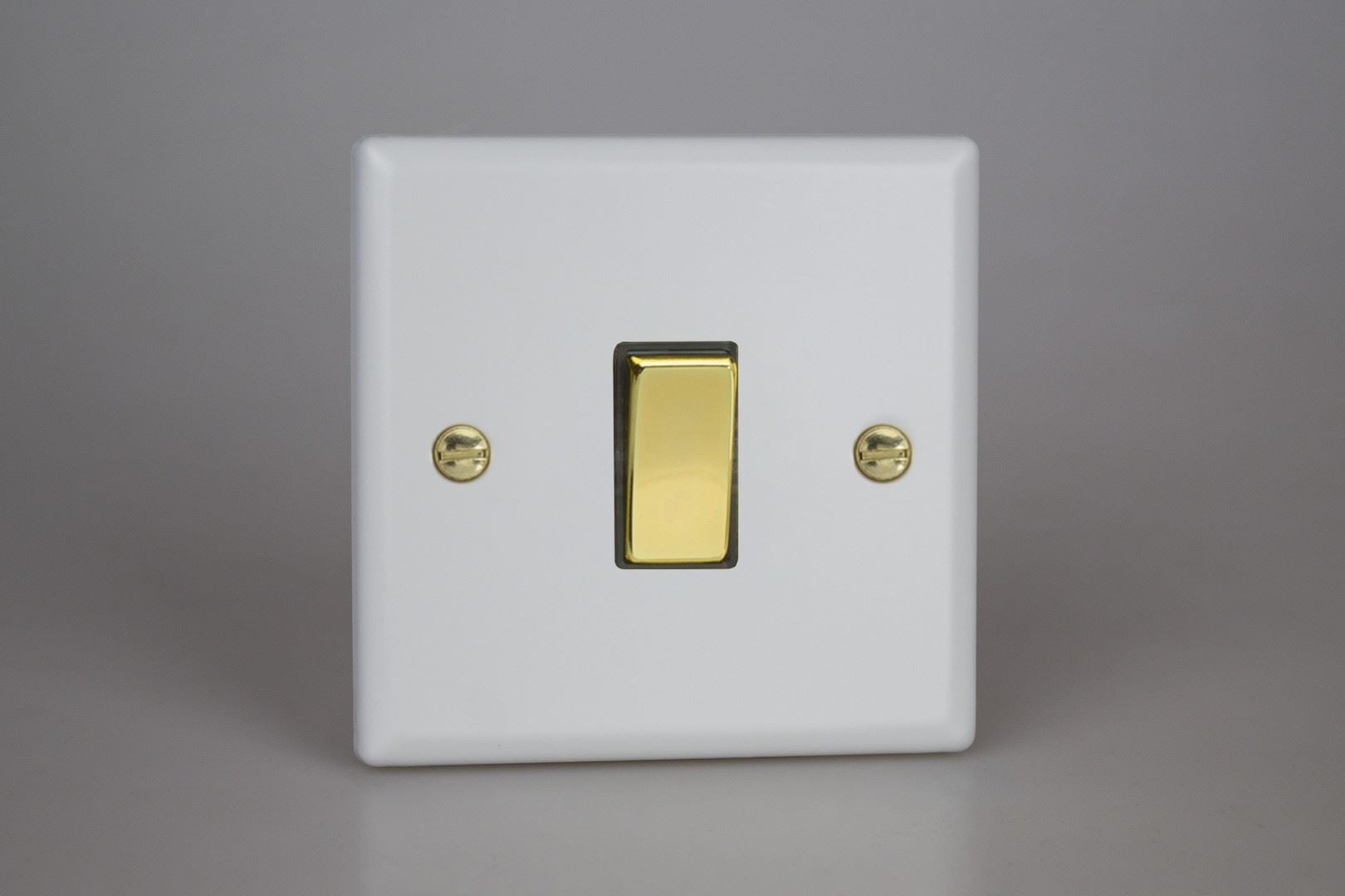 Varilight 1-Gang 20A Double Pole Rocker Switch in Vogue Matt White w/ Polished Brass