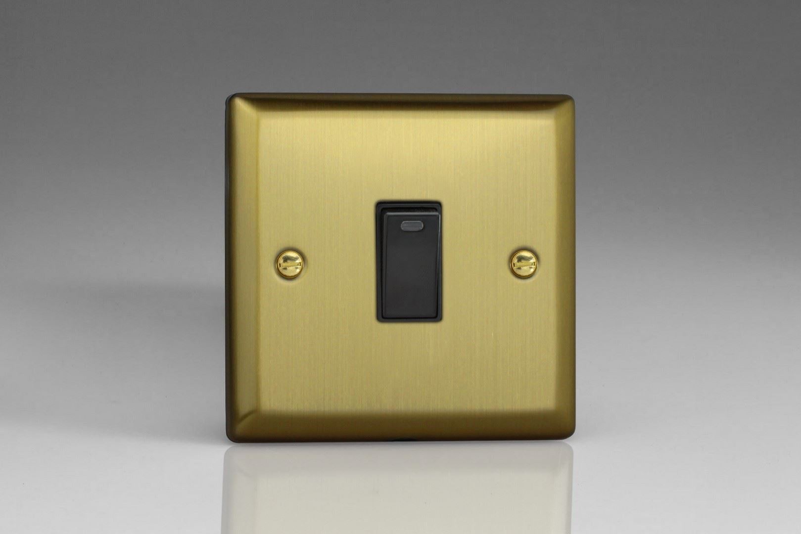 Varilight 1-Gang 20A Double Pole Rocker Switch + Neon Indicator Light Brushed Brass