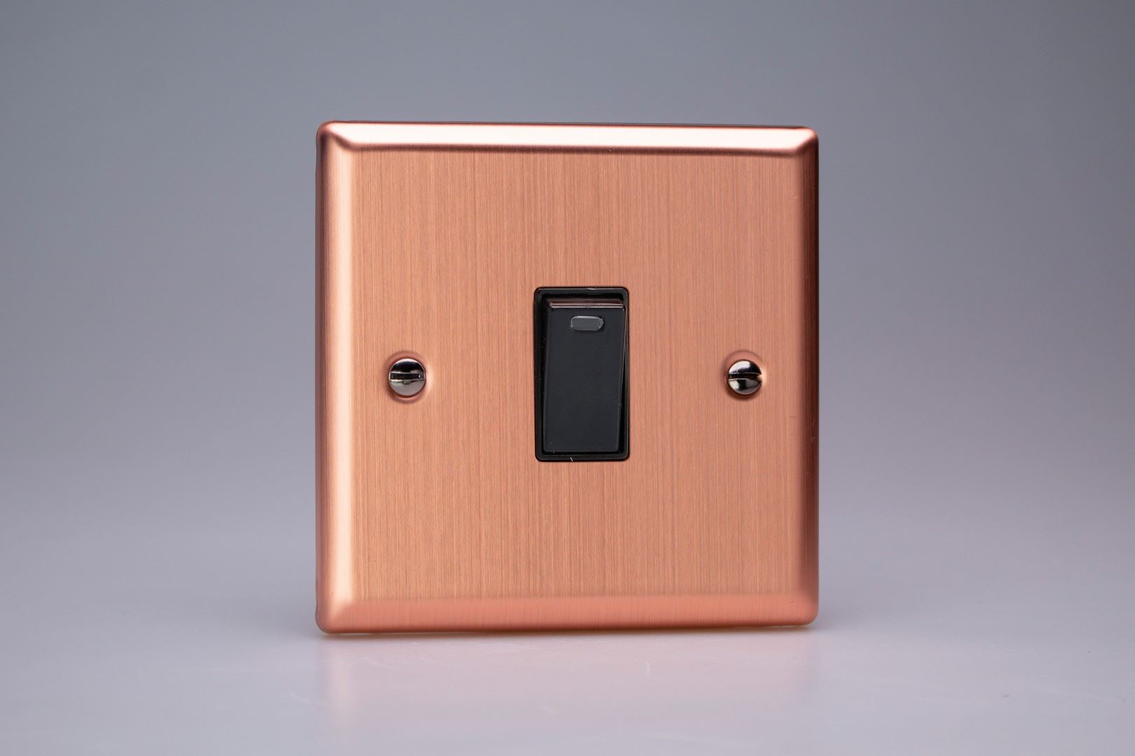 Varilight 1-Gang 20A Double Pole Rocker Switch + Neon Indicator Light in Urban Brushed Copper w/ Black Rocker