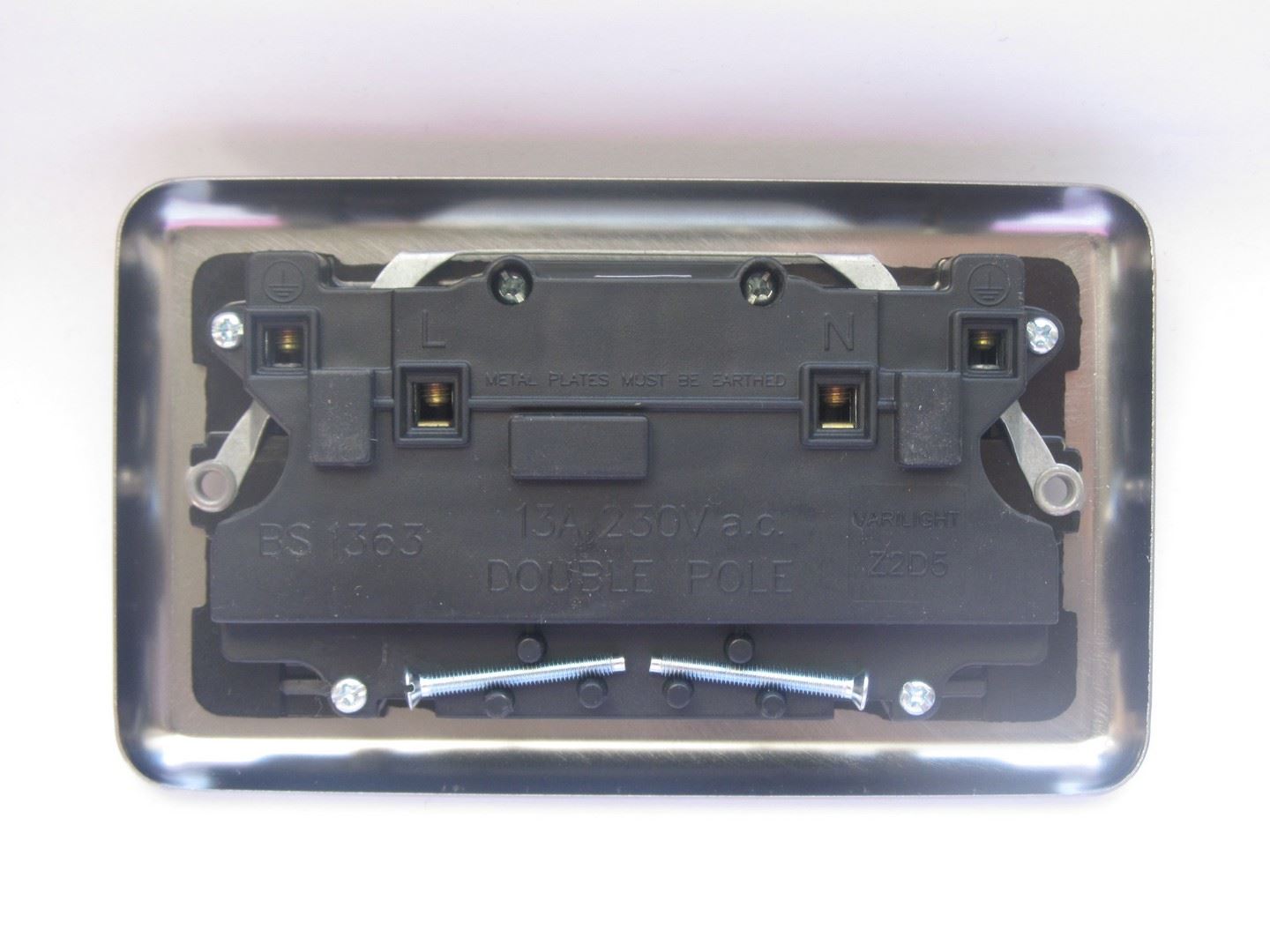 Varilight 2 Gang 13 Amp Switched Electrical Plug Socket Brushed Matt Chrome Black Insert XS5B